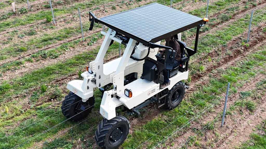 Le tracteur enjambeur viticole ALPO est 100 % électrique. Il fonctionne avec des batteries lithium lui offrant jusqu’à 10 heures d’autonomie.